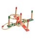 - Werft abwechselnd die Ringe und versucht, die Stäbe mit der höchstmöglichen Punktzahl zu treffen.